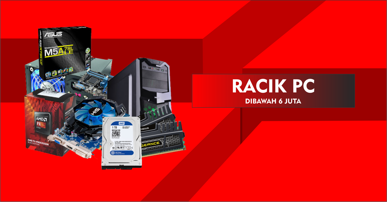 Aaight bro, kali ini gw mau bikin racikan pc (CPU Only) dengan harga kurang dari Rp6.000.000 (6 Juta Rupiah) yang inshaallah udah bisa mainin game terkini di resolusi HD atau bahkan Full HD dengan framerate yang playable. Tanpa basa basi, yuk kita lihat racikan pc nya.
